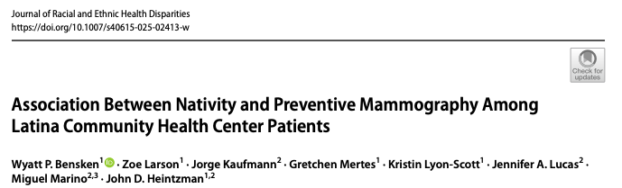 Background: In the United States, Latina women have delayed mammography utilization, yet it is unknown how use varies among patients who receive primary care from community health centers who serve a disproportionately high number of Latina patients. Methods: We used data (2013–2022) from a nationwide network of primary care organizations. The main outcome of interest, mammography among females over the age of 50, was analyzed in two different ways: (1) being up to date on mammography and (2) time to first mammogram after age 50. We used covariate-adjusted generalized estimating equations logistic regression and Cox proportional hazard models to estimate the association between nativity (US-born versus Foreign-born, region of origin, and country of origin) and mammography. Results: Among the 24,579 included patients, being up to date with mammography varied by nativity, with US-born Latinas having 1.55 (95% CI: 1.27, 1.90) and Foreign-born Latinas having 1.85 (95% CI: 1.64, 2.10) times the odds of being up to date compared to Non-Hispanic White (NHW) females. Foreign-born Latinas, regardless of region or country of origin, had a higher prevalence of being up to date compared to US-born NHW and US-born Latinas. Latinas from the Caribbean and Central America had the highest prevalence of being up to date, with those from South America having the lowest. Finally, US-born Latinas and Foreign-born Latinas had a shorter time to first mammography. Conclusion: US-born and Foreign-born Latinas had greater mammography use than NHW patients highlighting the important role of community health centers in preventive cancer care for Latinas.